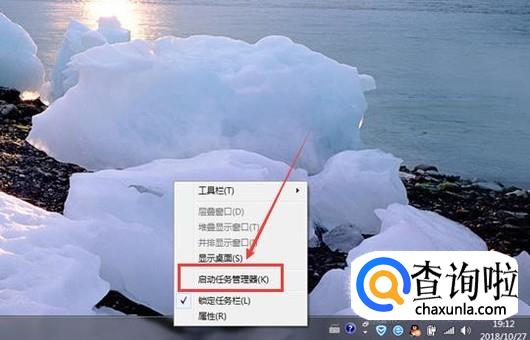 首先鼠标右键点击下方的任务栏,接着再点击【启动任务管理器】。