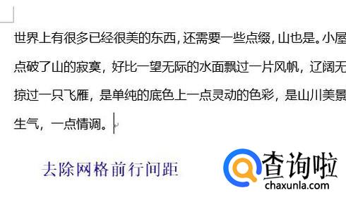 我们手动将这一项调整为“无网格”,就会发现这篇文档的行间距会自动缩小,下图就是调整网格前后的行间距对比图;