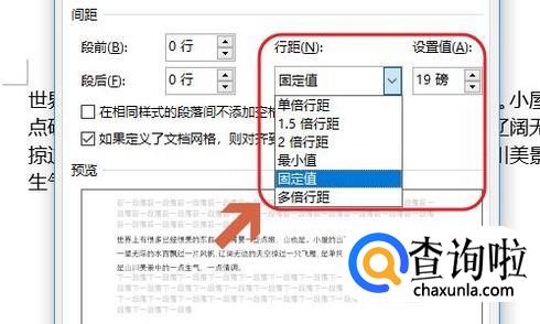 点击之后就会弹出段落对话框,在对话框中间找到“行距”,然后自定设置大小即可;