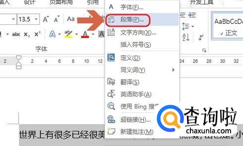 当然选中要调整的文档之后,点击鼠标右键找到“段落”这样也是可以打开段落对话框的,以上小编介绍的都是段落内部的间距,如果是改变段落与段落之间的间距,那么可以通过点击段落对话框中的“段前间距”或者“段后间距”来实现;
