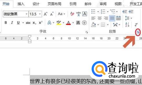 其次还可以将文档选中,然后依次点击“开始”-“段落”-“段落设置”,也就是段落右下角的那个图标,见图二;
