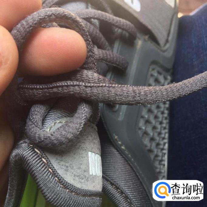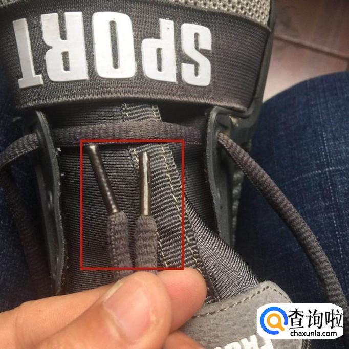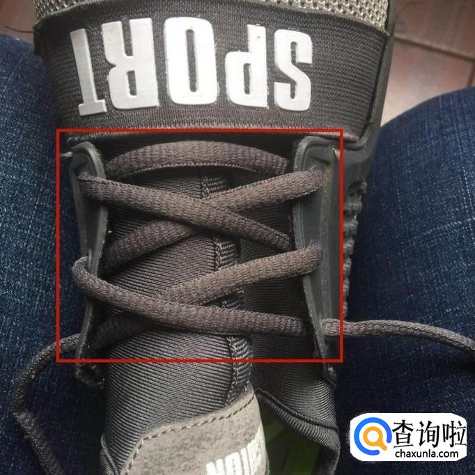 首先将鞋带穿入鞋子的孔中抽出,做到左右对齐。