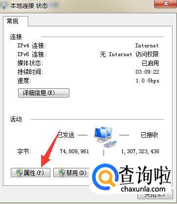 在本地连接页面下,点击“属性”按钮。