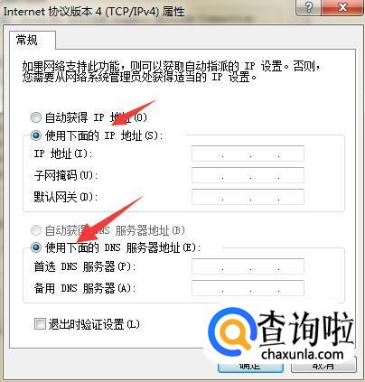 在属性页面,点击“使用下面的IP地址”。