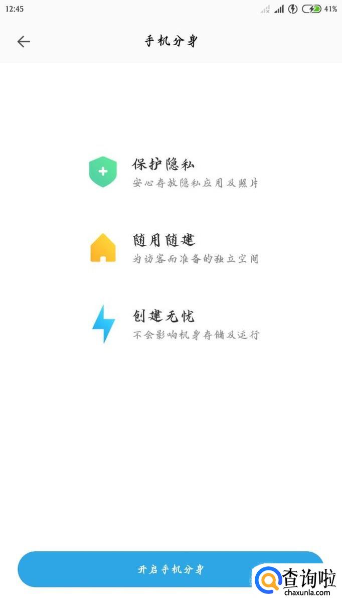 点击“开启手机分身”,系统就会自动切换到分身,如图所示。