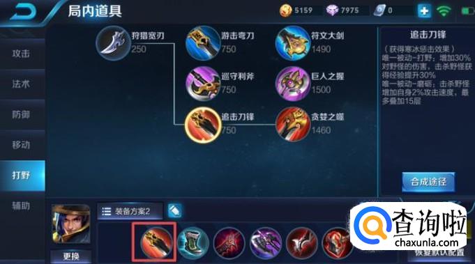 王者荣耀中的刘备最好是打野的形式来玩,那样发育速度会很快,可以快速掌控全场,第一件装备的话,我们可以出追击刀锋,这件装备可以帮助我们快速清野。