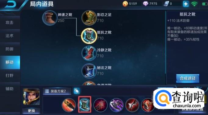 第二件装备我们可以出抵抗之靴,这件装备可以加110的法术防御,意义还重要,一般我们前期抓法师的时候,法术防御还是需要有的。