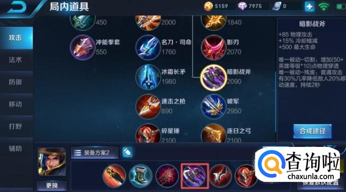 第四件装备我们应该出暗影战斧,这件装备可以加15%冷却缩减,这样可以让刘备的技能可以更快的使用,这样可以更快的抓对方的脆皮英雄。