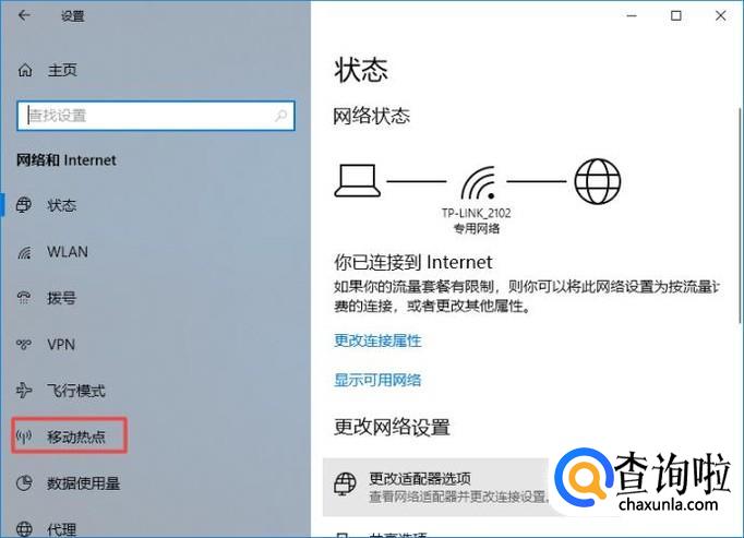 弹出的界面,我们点击移动热点;