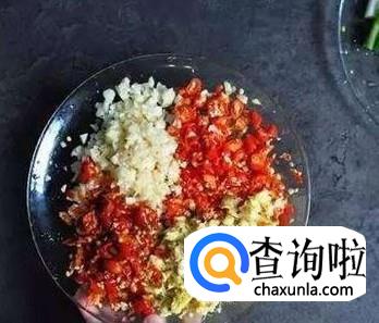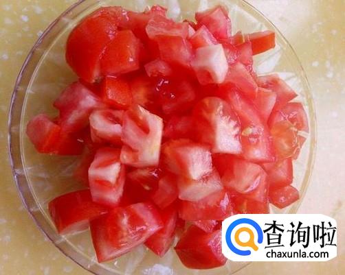 番茄清洗干净,去掉蒂,切成番茄丁。番茄一定要挑选自然成熟,比较红的番茄。