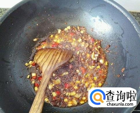 热锅下油,放入姜、酸菜、泡椒,翻炒均匀,煸出香味。油最好可以用猪肉,这样味道才更加好吃哦。