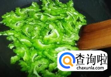 锅中再放食用油,油热后,放入苦瓜翻炒均匀。