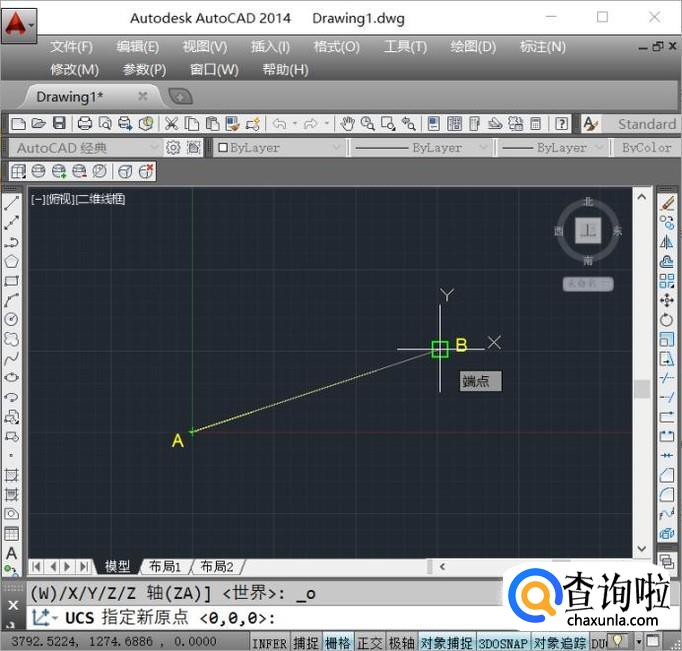 我们将坐标系从A点移动到B点以后,单击鼠标左键。需要准确移动要打开捕捉命令哦。
