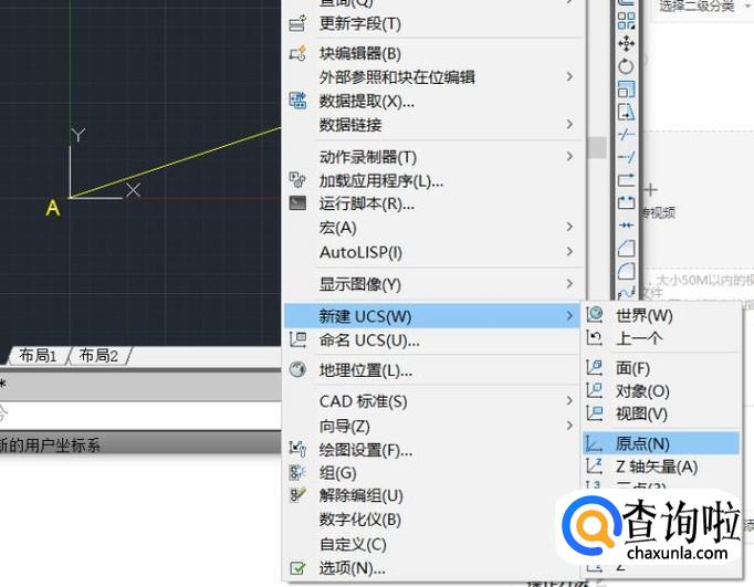 接着在子菜单当中选择“原点”选项,这样我们就可以自由的移动坐标系了。