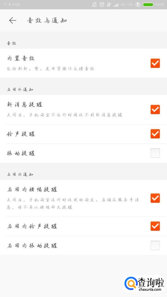 在“铃声提醒”选项里不再勾选,则手机淘宝里面的关闭声音提醒就设置完成了