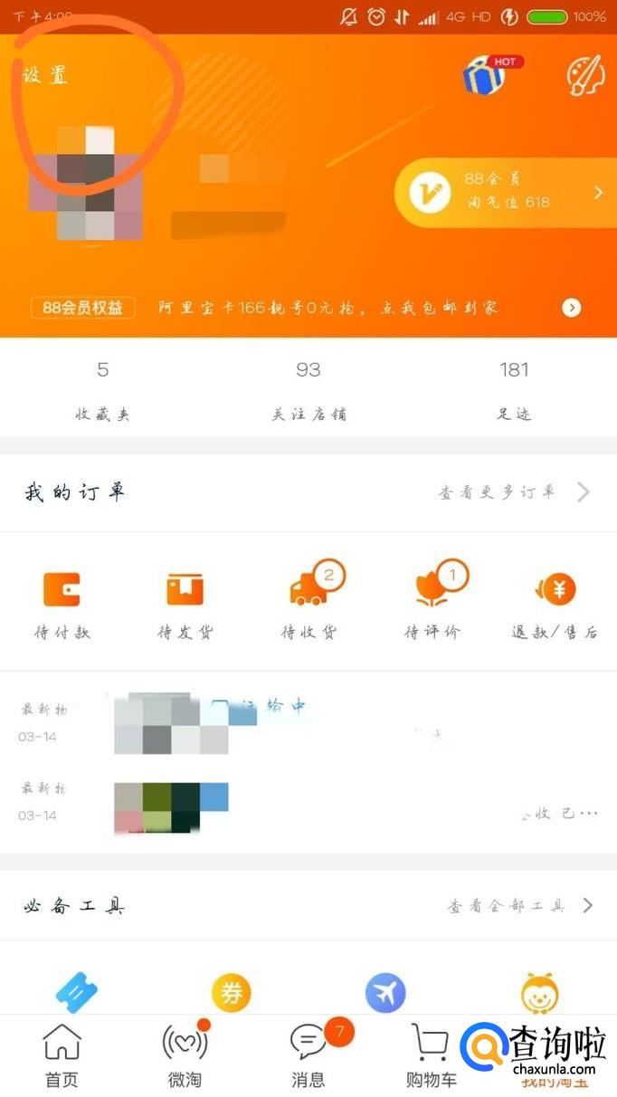 打开你的手机淘宝页面,找到右下方的“我的淘宝”,如下图所示