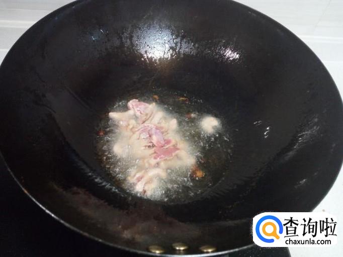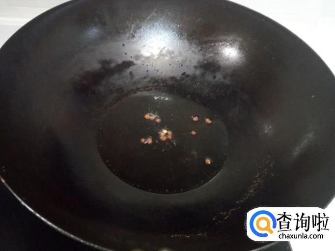 锅内放入油加热,油热后放入花椒爆锅。放入肉丝翻炒。