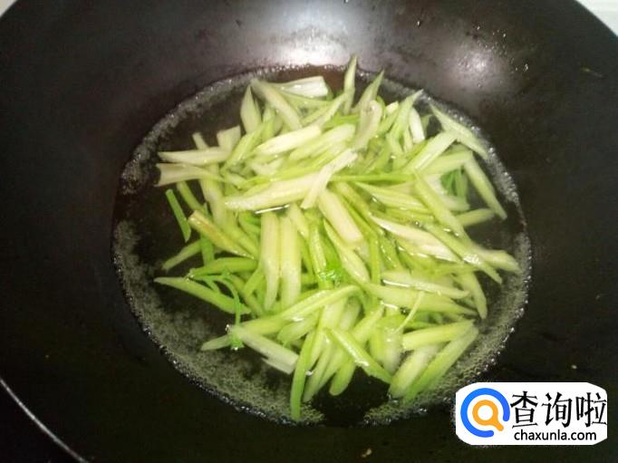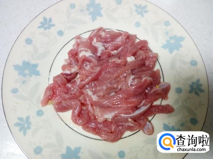 猪肉用水清洗干净,控干水分,切成粗丝。