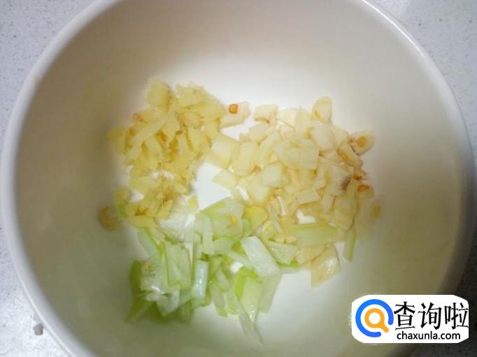 芹菜用开水焯一下,水开后入锅10秒钟即捞出,迅速用冷水过凉,沥干水分。