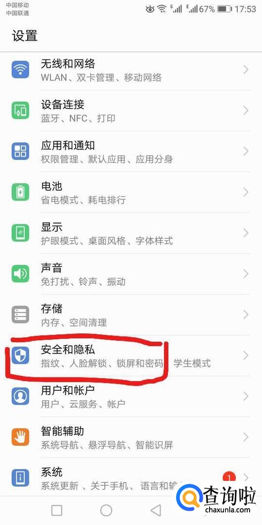 出现以下界面,点击安全和隐私,进入