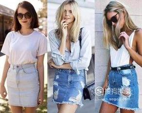 牛仔短裙。选择膝盖以上的牛仔短裙,配上白色的个性短T恤,可以彰显出青春活力的气质。