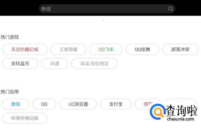 然后输入微信并点击右侧的放大镜图标,如下图所示。