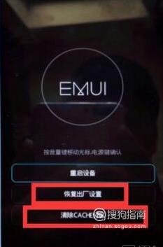 进入了【recovery】恢复模式后,按音量键操作选项,开机键确定。选择到【恢复出厂】,然后选择清除cache分区,接着确定清除。