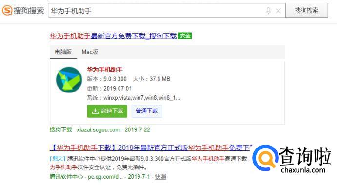 我们打开电脑,在搜狗浏览器中输入【华为手机助手】搜索,在下方的搜索选项中下载。