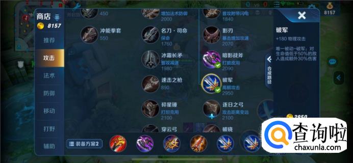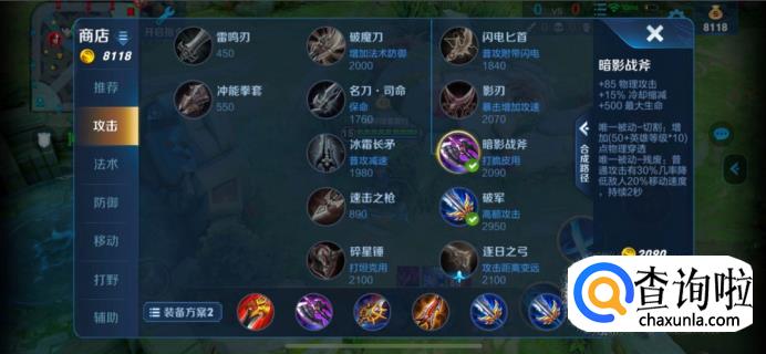 暗影战斧,物理攻击85,满级能增加200点物理穿透。