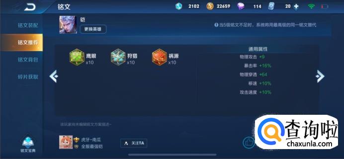 铭文推荐:用物理穿透、物理伤害、暴击效果。