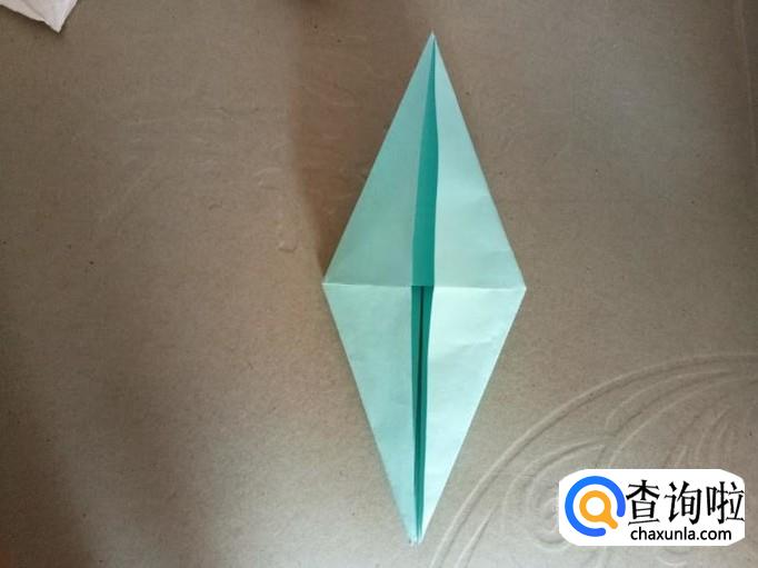 把刚折好的部分翻开,沿着折痕往里折,向上翻开。