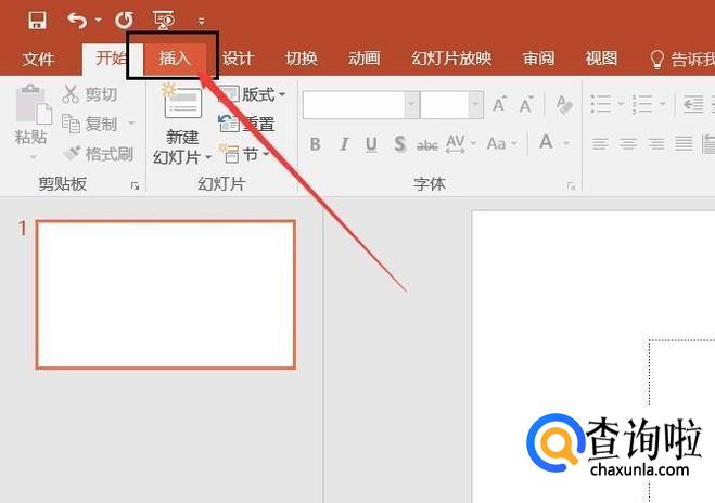 首先,我们打开PPT软件,点击软件主页面中的“插入”菜单选项。
