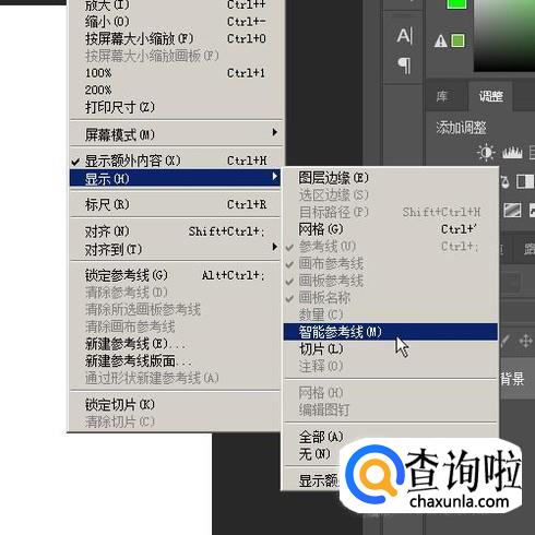在右侧即弹出子菜单,再点“智能参考线”即可。