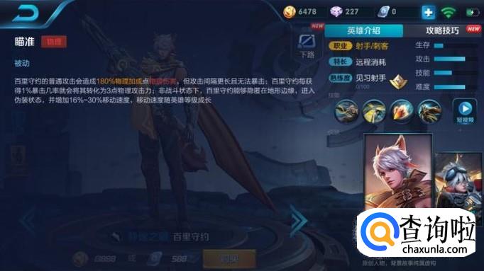 而且百里守约有一个被动技能,那就是:它的普通攻击拥有更高的伤害,造成180%物理加成点物理伤害,但攻击间隔更长且无法暴击。这就决定了百里守约不能带暴击铭文或者是暴击效果的铭文,而是直接追求高物理穿透和高物理攻击 。
