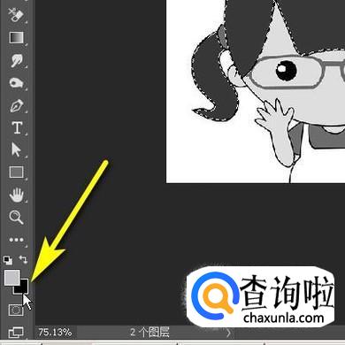 再设置背景色为黑色,按CTRL+DELETE,把选中的头发这部分填充为黑色。