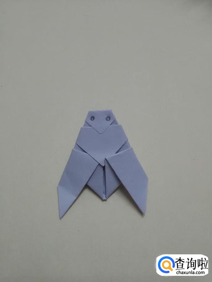 再把折上去的两个角往下折回一段,当作知了的两只翅膀。