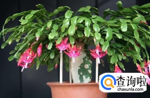 蟹爪兰的固定。长到很大的蟹爪兰,要用竹竿等插入土中,上部扎成2层至3层圆形支架,将节枝捆扎于圆环上,让蟹爪兰枝叶容易固定。