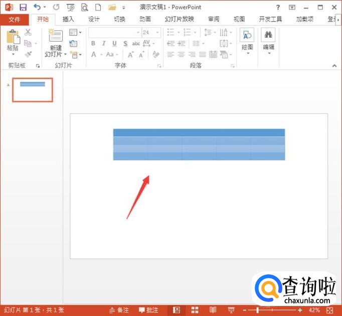 设置好行数和列数之后点击确定,可以看到我们就在PPT中插入表格,如图所示: