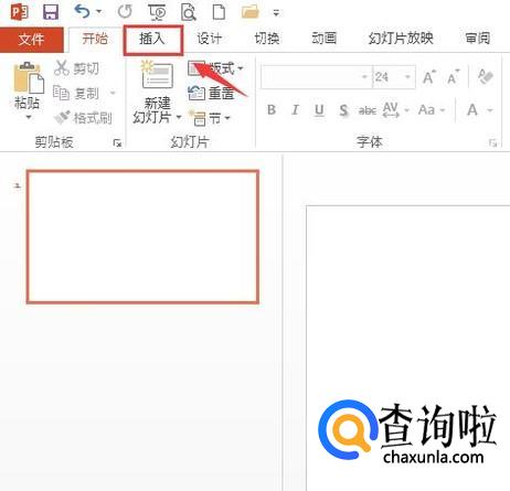 打开PPT之后在打开的界面内找到插入选项,如图所示: