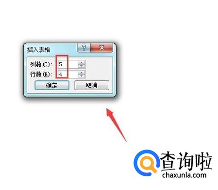 点击插入表格选项,在弹出的对话框内设置表格的行数和列数,如图所示: