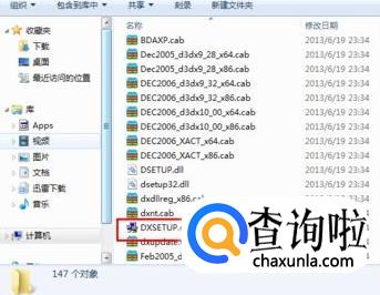 下载完成后,解压,解压后的文件夹中有很多压缩包,那些不用管,找到一个DXSETUP.exe文件,点击开始安装。