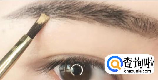 三点确定之后连线画出眉型,用眉粉将眉毛填充均匀。