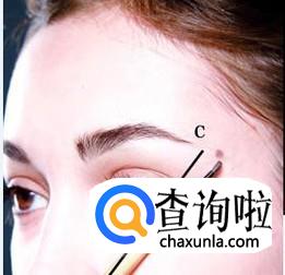 C:确定眉尾,眉笔斜放于眼角,如图,确定眉尾