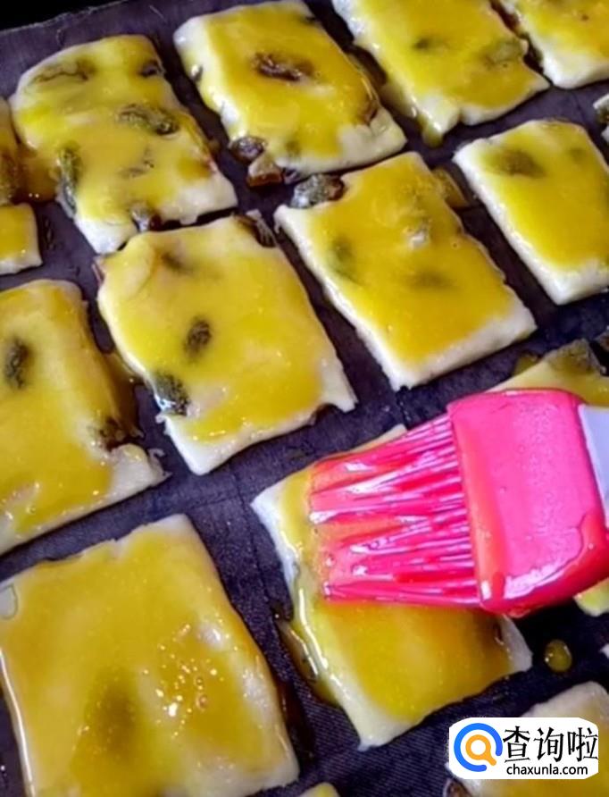 然后我们在上面刷一层蛋黄液,将烤箱预热,放入烤箱,上下火180度,烤15分钟