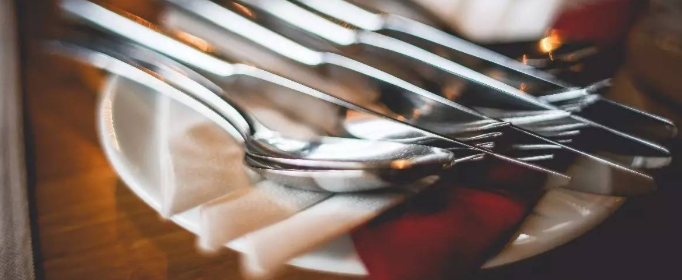 西餐餐具具体有大盘子、小盘子、浅碟、深碟、吃沙拉用的叉子、叉肉用的叉子、喝汤用的汤匙、吃甜点用的汤匙等。西餐餐具中无论是刀子、叉子、汤匙还是盘子,都是手的延伸,例如盘子,它是整个手掌的扩大和延伸;而叉子则更是代表了整个手上的手指。