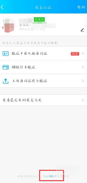 在实名认证界面可以看到我的账号是实名了的,那么我们点击下面的“注销账户”,如下图。