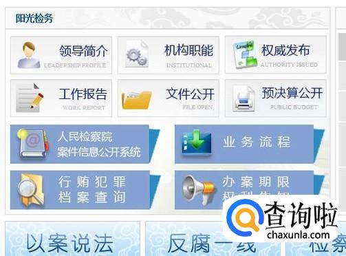 进入人民检察院官网后,在人民检察院官网的主界面中找到行贿犯罪档案查询选项,然后点击进入。