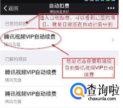 我们就可以进入自动扣费,可以看到正在续约腾讯的vip,接着点击“腾讯视频vip自动续费”。