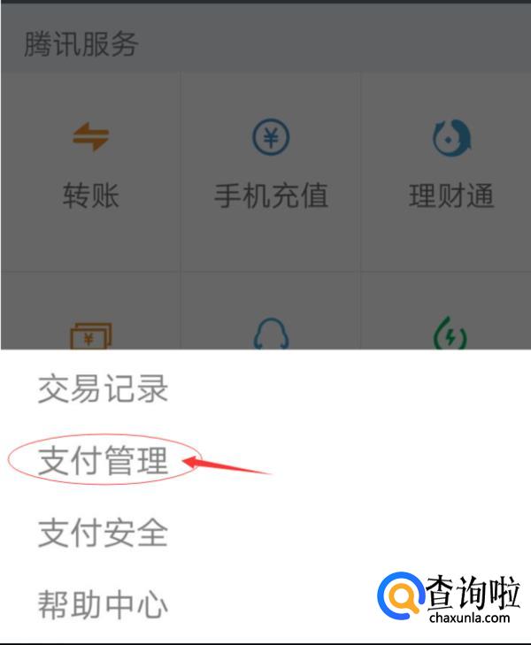 接下来就会跳出“交易记录”“支付管理”“支付安全”和“帮助中心”,点击“支付管理”。