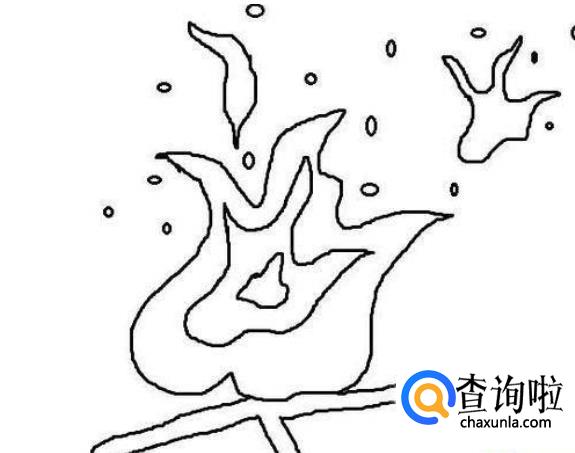 最后,我们在火焰的上方圈出一些小圆圈,可以表现出这是一团烧的很旺的火。到这里一幅火焰的简笔画就画好了。